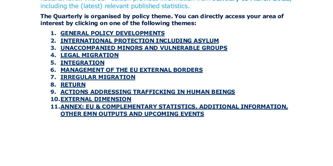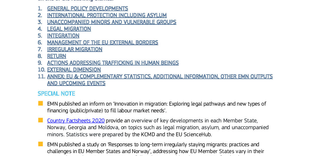 Ta informator se osredotoča na to, kako države članice urejajo mobilnost in prebivanje oseb, ki jim je bil status mednarodne zaščite že priznan v drugi državi članici. Zopet se kot glavni izziv, s katerim se srečujejo države članice v zvezi s sekundarnimi gibanji, pojavlja pomanjkanje enotne pravne podlage za obravnavo vseh prošenj.